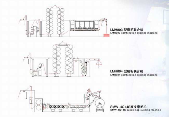 組合(聯(lián)合)磨毛機(jī)流程圖